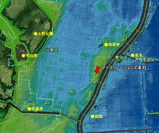 ※Tokyo Terrain(東京地形地図) on the Google Earth で作成
