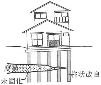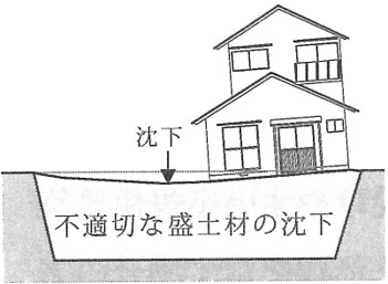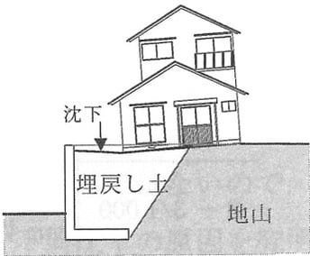 建物が傾く原因の多くは地盤にあります。地盤に起因する不同沈下事例を図で示しました。