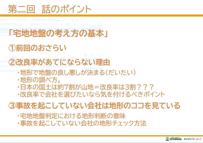 第二回の動画では、「地形による地盤の良し悪し」と「地盤判定のための地形の見方」を説明しました。