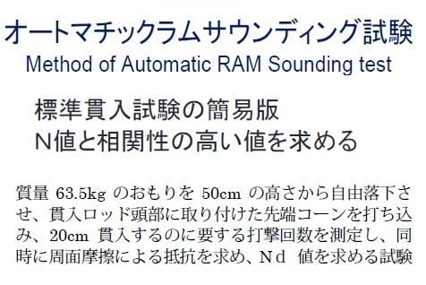 オートマチックラムサウンディング試験は動的コーン貫入試験に分類され、確実な支持層の確認を省力化で行うことのできる試験です。