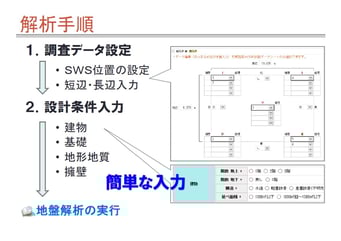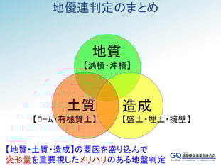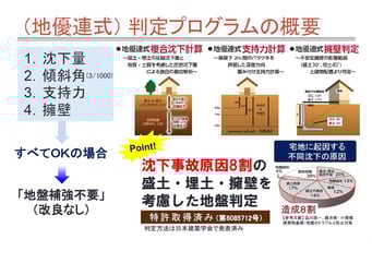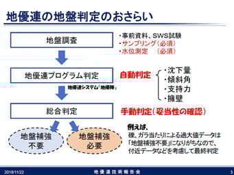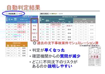 プログラムによる計算・判定は、次の各項目について行われ、すべてOKの場合に「地盤補強が不要」となります。