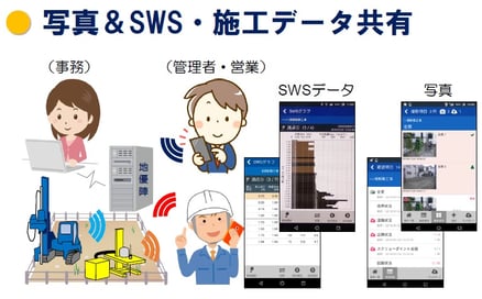 地優陣のスマホ連動システム(ジバトール)では、調査中のSWS試験データを地優陣サーバーにアップロードすることで、調査員がその場でSWS試験のグラフや数値データを確認できます。