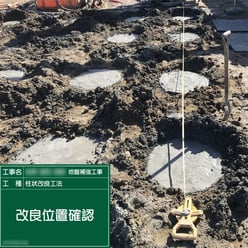 当現場は地盤調査で地中障害物が予想できたため、事前準備で丁寧に撤去したあと無事柱状改良工事を行うことが出来ました。なお、建設業界では解体などで生じたコンクリート破片を通称「ガラ」と呼んでいます。