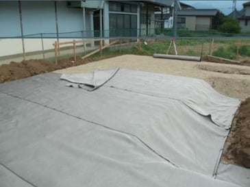 施工重機を搬入出来ない現場では、「ジオクロスユビファシート」を敷いて軟弱地盤を補強するという選択肢があります。